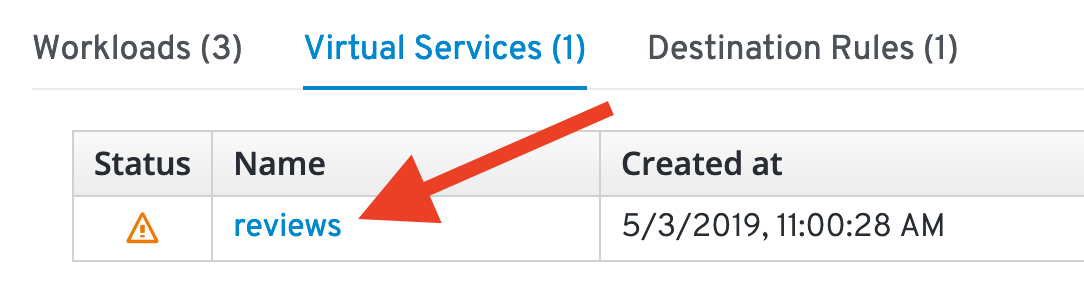 Now open the reviews service details by selecting the Virtual Services tab and selecting reviews.