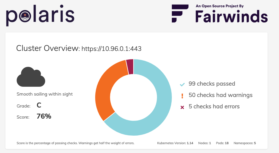 kubectl port-forward --namespace polaris $(kubectl get po -n polaris | grep polaris-dashboard | \awk '{print $1;}') 8080:8080And then navigating to http://localhost:8080/ in your browser.